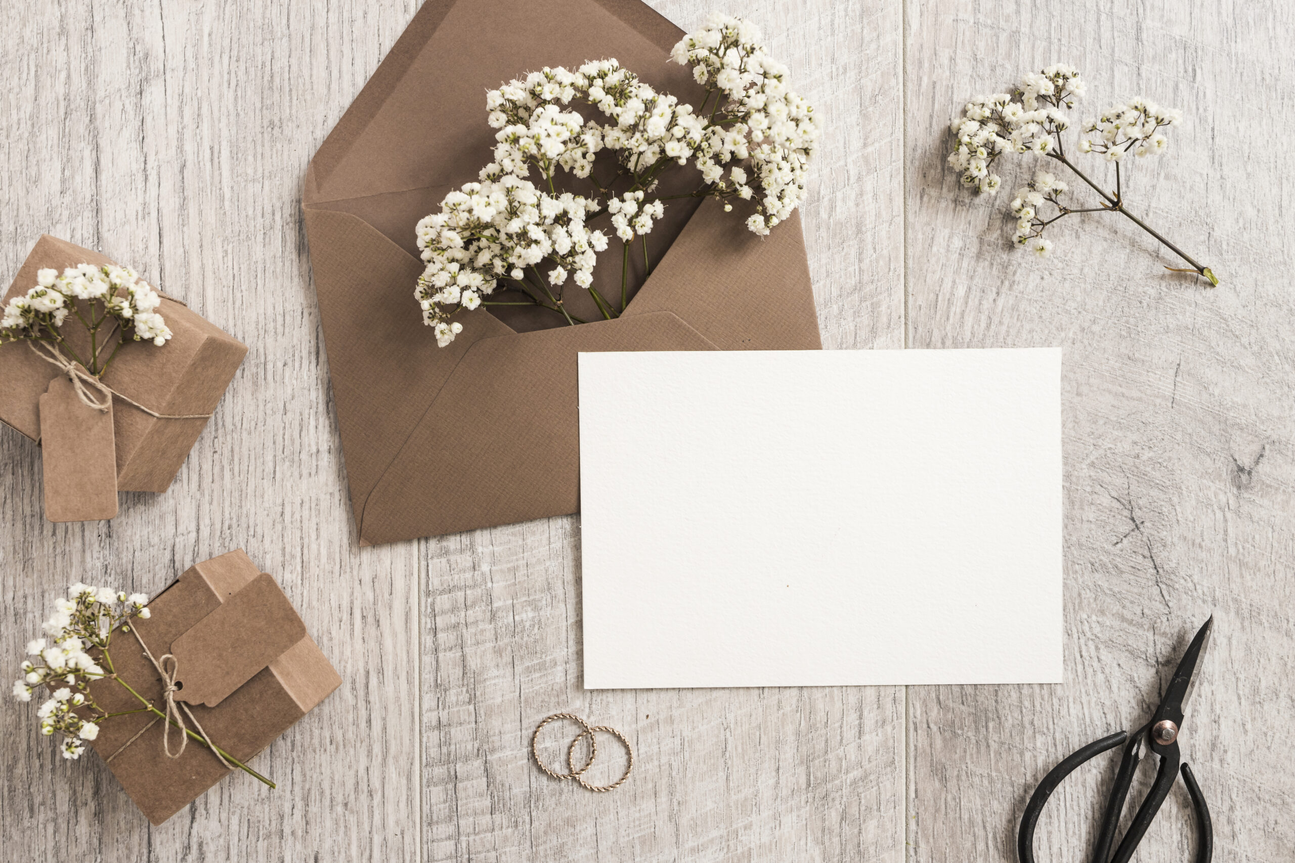 Celebra l’estate e l’amore con un tema floreale raffinato. Opta per stampe delicate in nuances pastello sui tuoi biglietti di matrimonio e aggiungi fiori secchi all’interno dell’invito per un tocco naturale ed elegante.